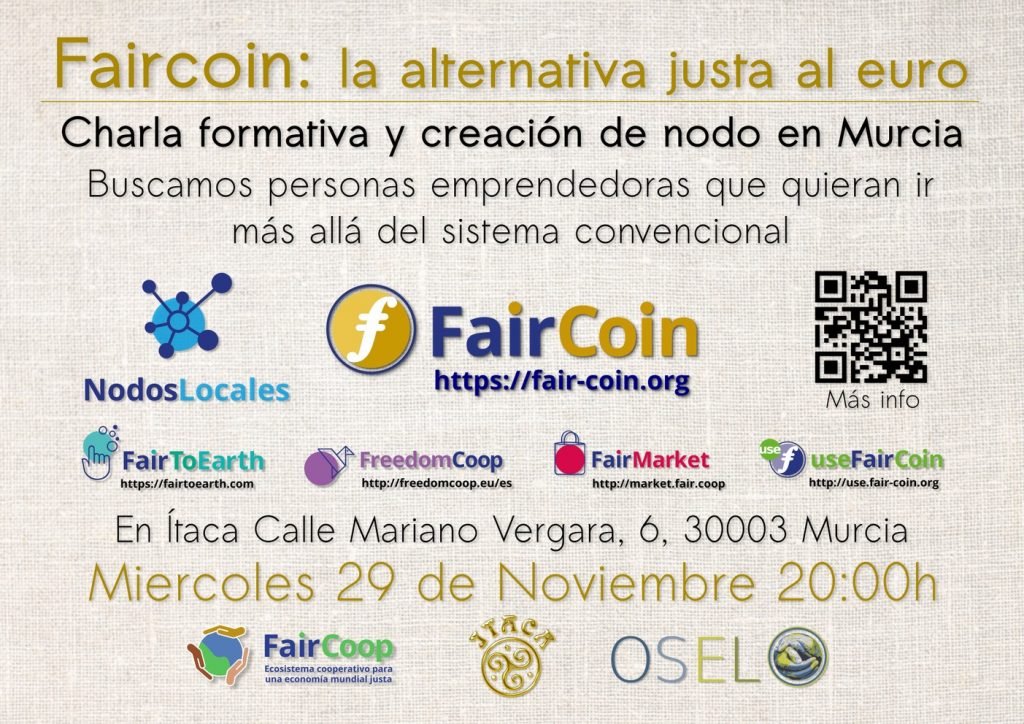Charla FairCoin – Miercoles 29 Noviembre 20h en Ítaca Murcia
