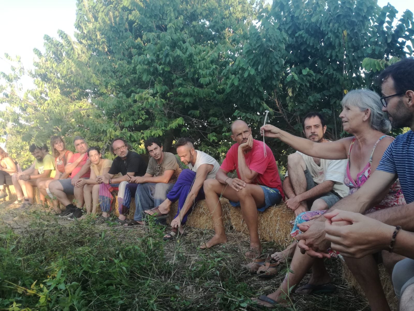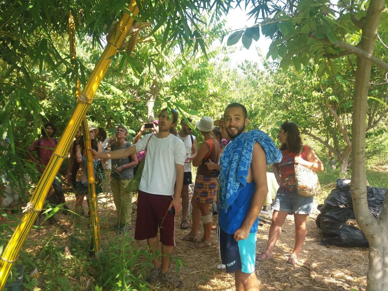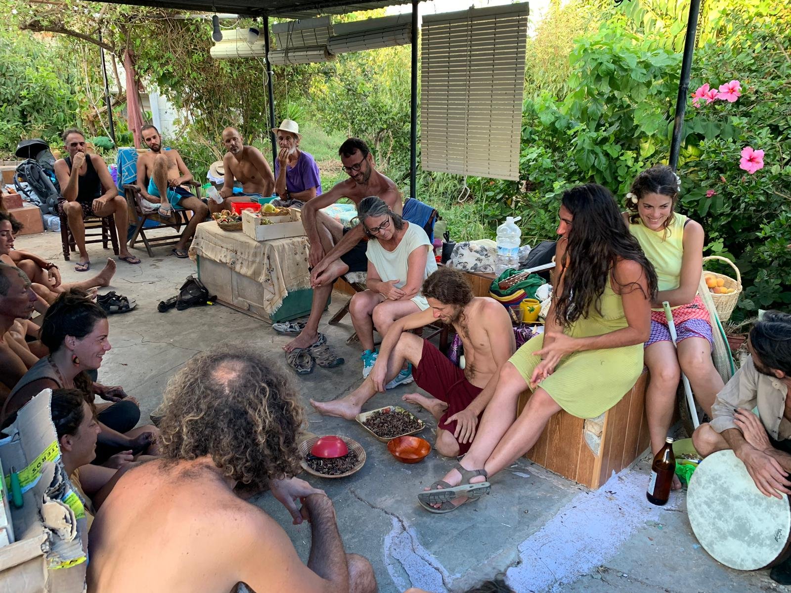 Por la tarde surgieron compartires de saberes como los de Yoni, que nos habló de la música pitagórica con canciones inlcuídas, Gyorgos que nos mostró cómo preparar las algarrobas para hacerlas en rico sirope y Lucas hizo una introducción a la radiestesia que seguiría con prácticas al día siguiente.