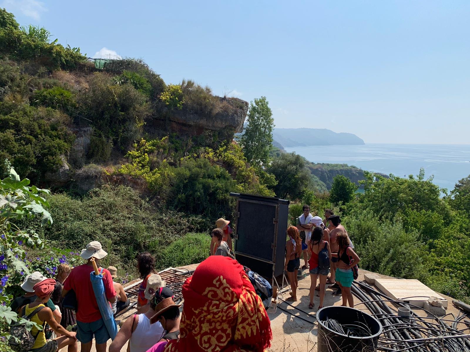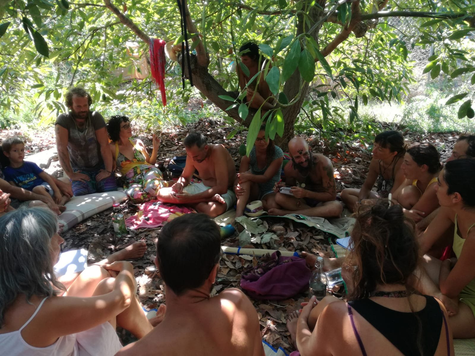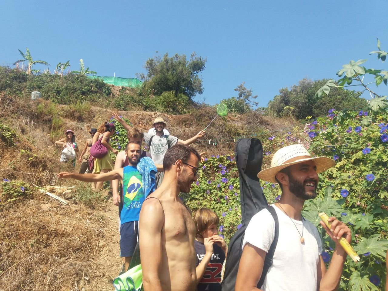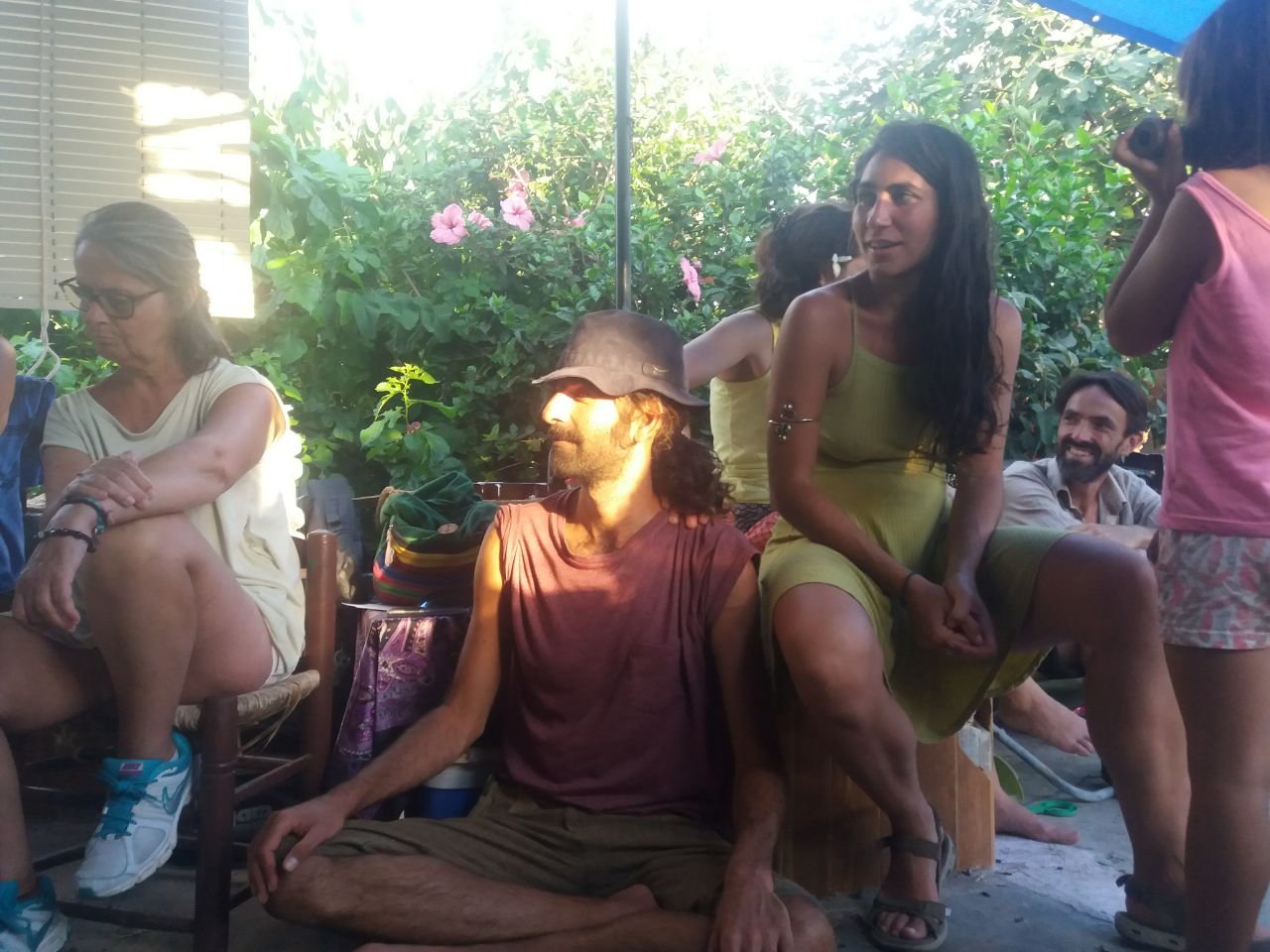 Por la tarde surgieron compartires de saberes como los de Yoni, que nos habló de la música pitagórica con canciones inlcuídas, Gyorgos que nos mostró cómo preparar las algarrobas para hacerlas en rico sirope y Lucas hizo una introducción a la radiestesia que seguiría con prácticas al día siguiente.