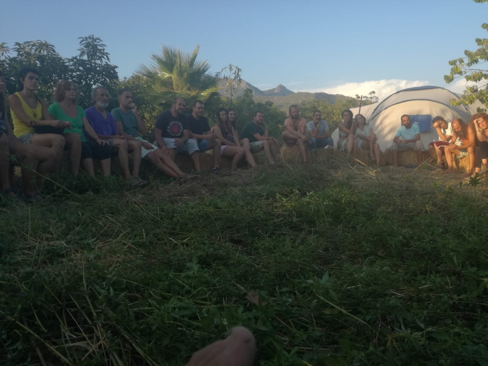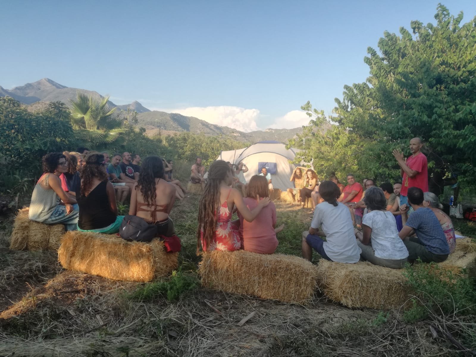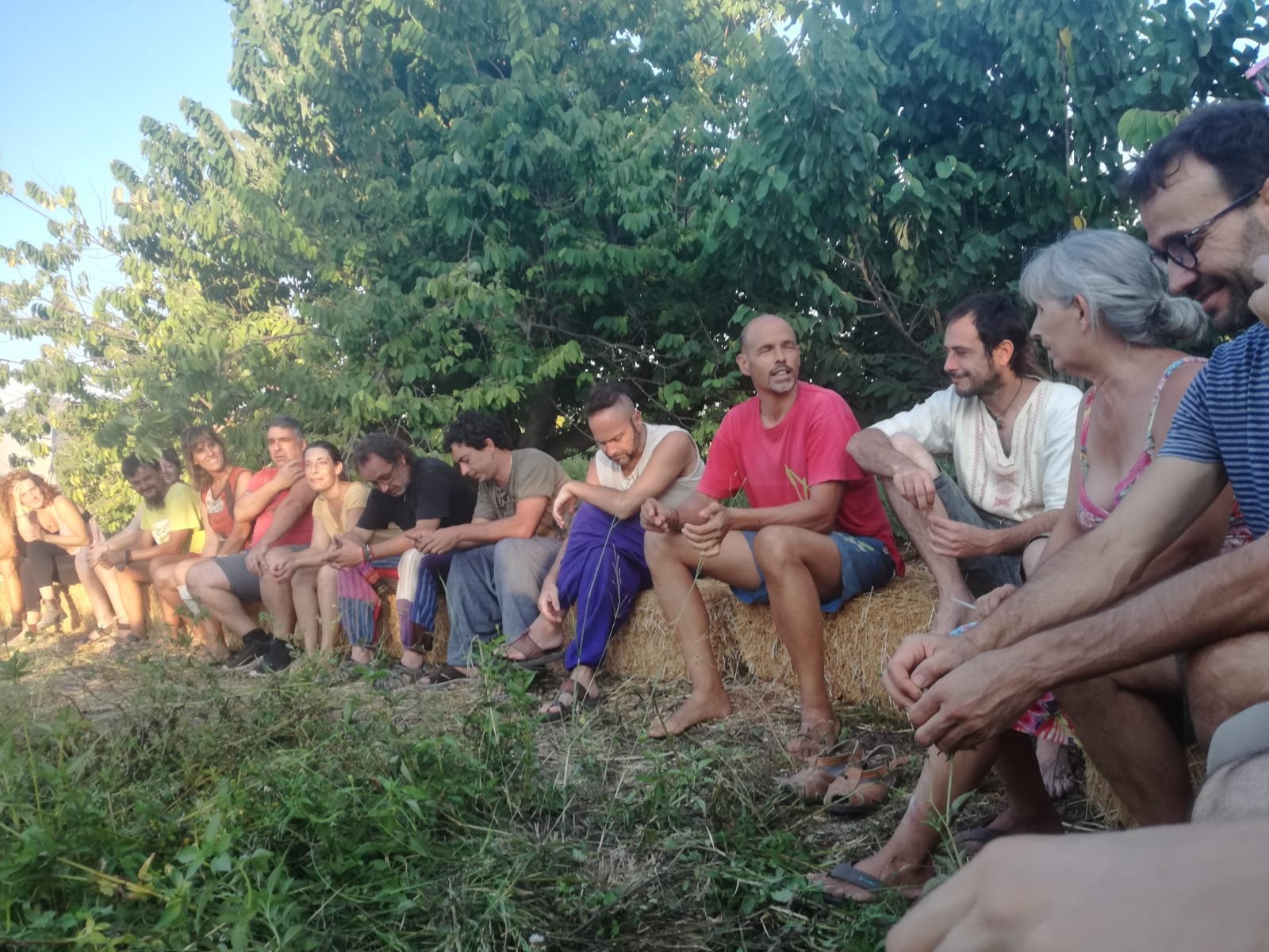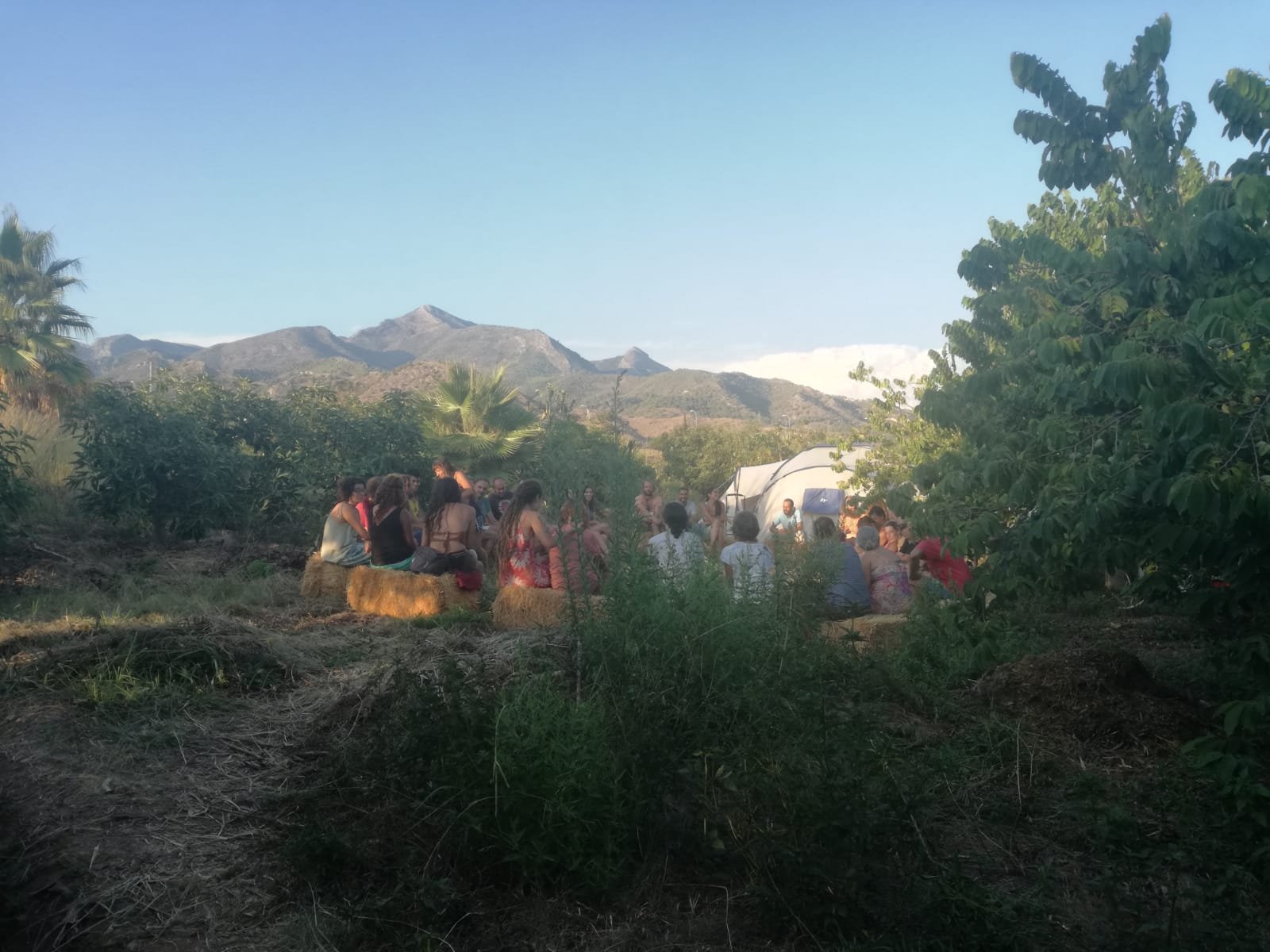 Agradecer a l@s Permag@s que hicieron posible la organización del Encuentro, a Gonzalo, Yoni, Rosa, Seth y la pequeña Luisa, a Patri, Esther, Helena, Pablo, Niko y Kiko. La semana previa fuimos un grupo de trabajo en la finca espectacular: se establecieron 2 water secos, la ducha, la poda de la higuera, limpieza y desbrozado de espacios, el círculo de las balas de paja, espacio de fregadero, basuras, espacio de cocina y comedor… trasubos importantes!