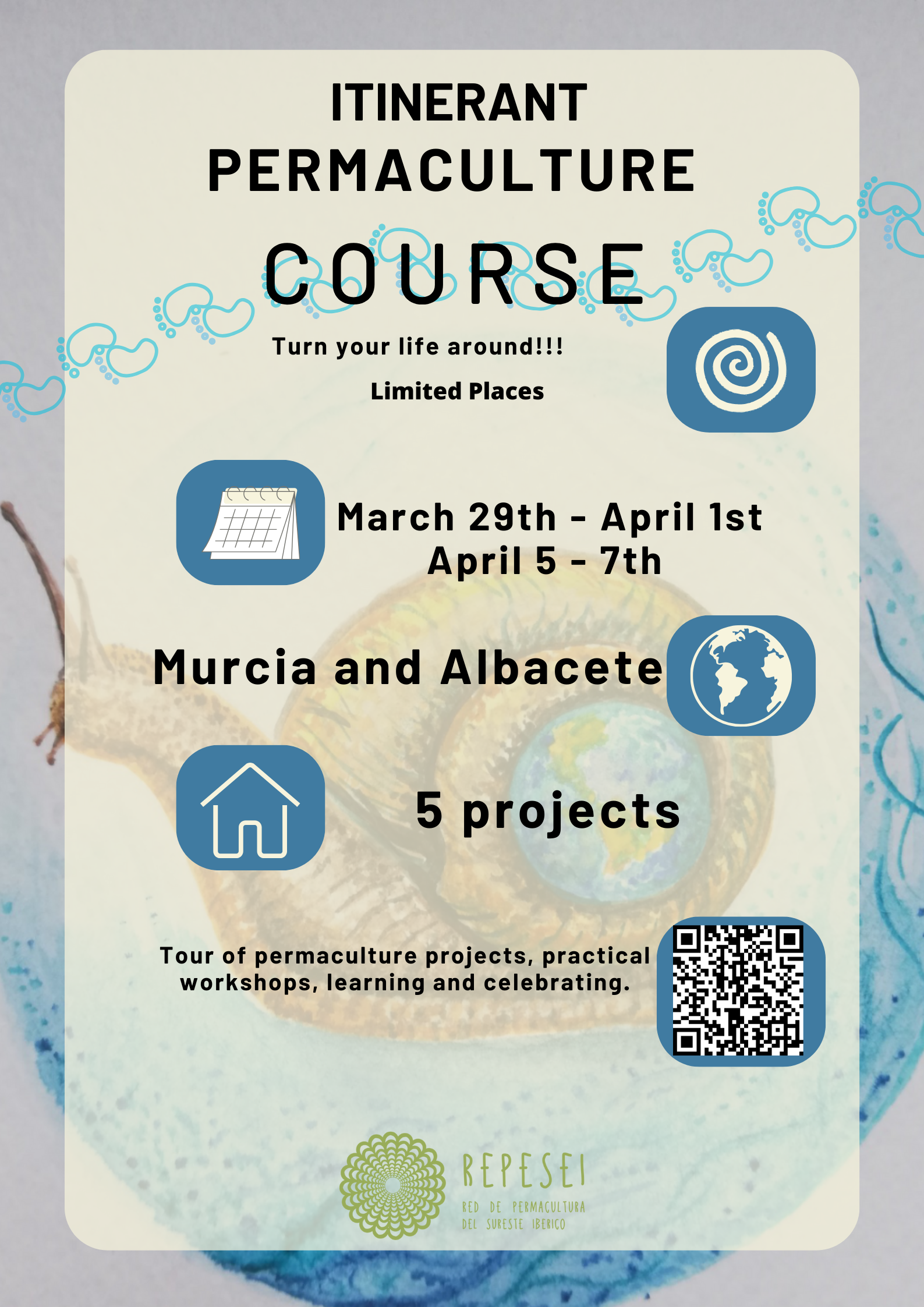 Along Easter holidays 2025. We will begin the course in Las Suertes (Elche de la Sierra) on April 17th in the morning and end in Proyecto Rúcula (Mula), on the 21st of April in the afternoon after lunch.