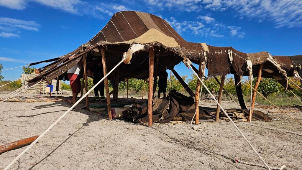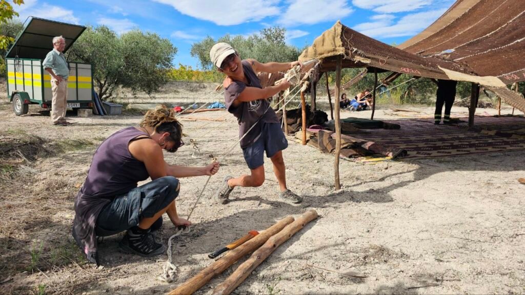 Comenzamos la jornada del viernes montando la Haima, emblemático espacio de la red, para lo cual tuvimos que tirar de ingenio, cosa que se nos da muy bien, ya que cada parte de la Haima estaba en un lugar diferente y no iba a poder llegar a tiempo al encuentro.