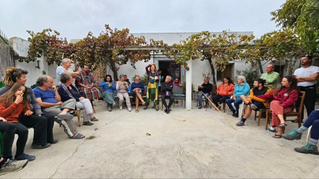 En círculo se recordaron y explicaron las distintas actividades que se iban a realizar en el día mientras las personas interesadas se iban apuntando a unas y a otras. Después Paco y Heydi nos mostraron toda la finca y fueron explicando cómo había llegado a ser el incipiente, diverso y acogedor vergel que ahora es. También nos mostraron su maravilloso y extenso banco de semillas, un ejemplo a seguir de empoderacierto y libertad, mientras nos contaban los orígenes de las semillas, historias graciosas y anécdotas curiosas.