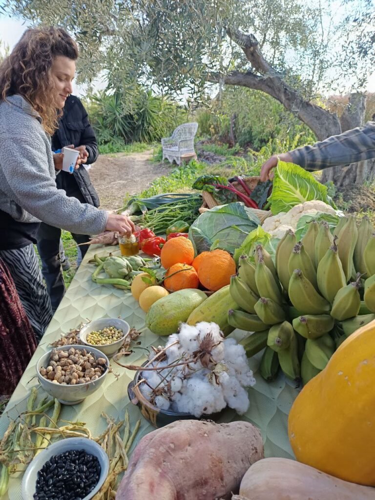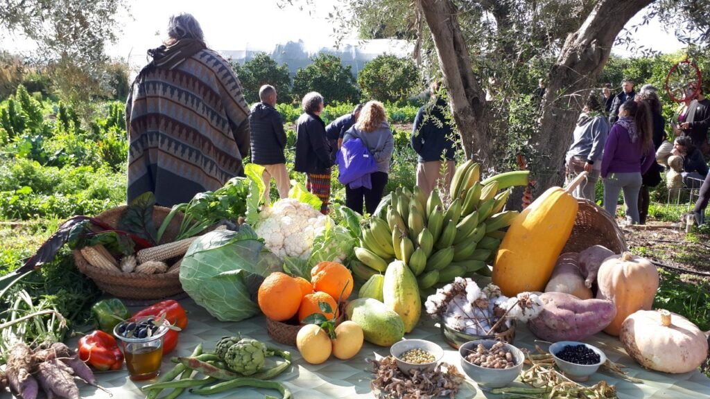 Sobre las 19h. Elías, el guardián del tiempo de este encuentro, nos recordaba que iba a comenzar el taller de yoga con Maika. Fue una buena forma de bajar a tierra y conectar con el lugar y nuestro cuerpo. Una hora más tarde yo comenzaba la presentación de Biovives. Conté la historia de esta finca, sede de Biovives, desde que mi abuelo la compró y como después de muchos años de abandono y deterioro pedí permiso para cultivar en ella, y un año después de aquello mi abuelo me propuso que la arreglara y me la quedara para vivir aquí. No fue fácil tomar la decisión, pues en el estado en que se encontraba la finca, conllevaría un gran esfuerzo convertirla en algo deseable donde habitar. Pero sentí que se abría un camino ante mi que me llevaría, no solo a restaurar una tierra, sino también a restaurar un legado familiar y a mi mismo por el camino. Poco después de aquello conocía a mi pareja Raquel, a quien pronto invité a participar en este proyecto de transformación y restauración de algo tremendamente insostenible (con montañas de residuos industriales, entre otras barbaridades) y convertirlo en un vergel rebosante de vida, un paraíso particular que poder abrir al mundo, y con el objetivo de ser lo más sostenible posible, energética, alimentaria, social y económicamente. Así nos enrolamos en una aventura que duró los últimos 15 años, en la que pasamos momentos muy duros de trabajo y austeridad, pero también otros momentos de apoyo y compañerismo con un montón de personas entrañables que pasaron y pasan por aquí dejando su legado entre estas paredes.