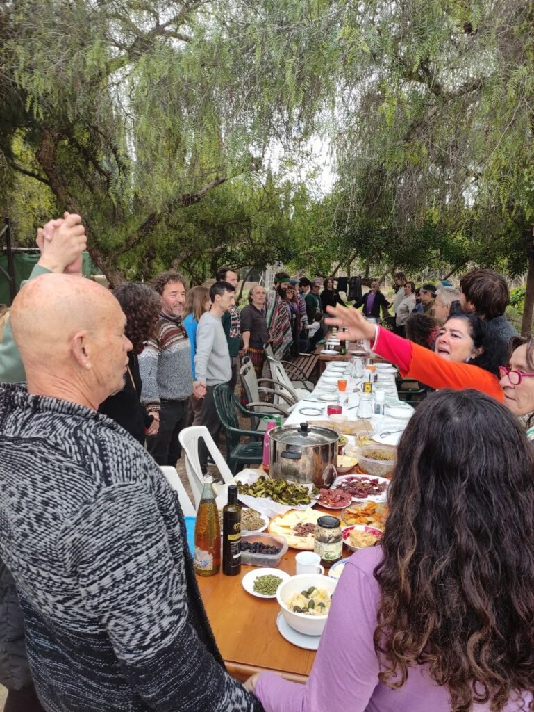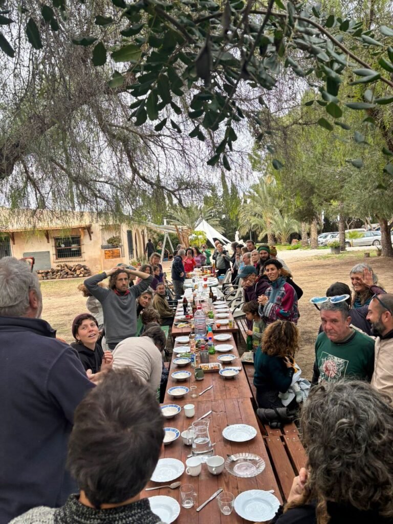 Después de la sobremesa (ya sobre las 17h), recogimos y limpiamos entre varias personas y enseguida nos unimos al círculo de cierre, que fue sorprendentemente animado, con juegos de levantar a personas por los aires. Un verdadero regalo de despedida. Como ya era tarde no fuimos a ver atardecer al parque natural del hondo que está a 6 km de Biovives. En cambio, vimos atardecer aquí, fluyendo y disfrutando del momento y aceptando los cambios imprevistos con la misma aptitud de gozo y disfrute con la que vivimos todo el encuentro. Ha sido para mi un gran placer y satisfacción acoger este encuentro de invierno de la Repe 2026 en Biovives. Espero que pronto volvamos a vernos y a disfrutarnos en otro lugar. Abrazos y besos Dani.
