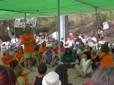 Porque si algo se desprendía sin duda de este encuentro ha sido la magia, así por intentar citar algunos de los momentos mágicos fueron: la parte final del taller de pintura corporal formando varios círculos cogidos de la mano en el área de la plaza del pueblo como si dijéramos cerca de la cocina, la mayoría desnudos e invocando cánticos al sol compañero del cielo. La fiesta del sábado noche que musicalmente nos desato a todos, el yoga kundalini del domingo por la mañana con cerca de 40 personas celebrando el amanecer emergiendo entre las montañas, todo ello recibido entre mantras y abrazos. Y una mención especial al entrañable acordeón de Pere y a el mismo, que supieron como nadie animarnos en los tiempos de espera mientras hacíamos cola para la comida por cierto que 100% ecológica, vegetariana con su toque hindú.